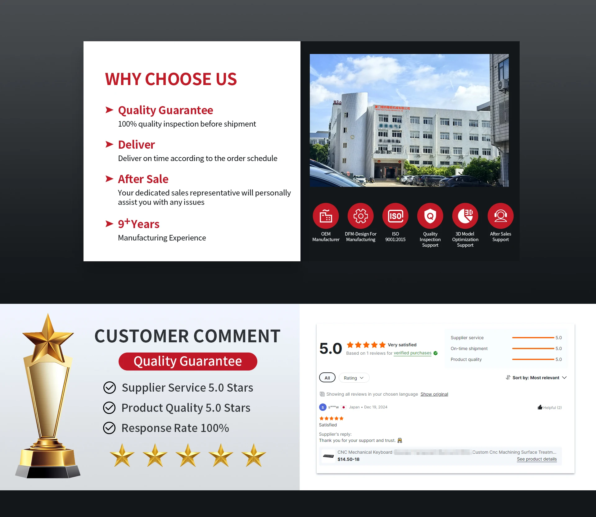 Sản Phẩm chính: Sản phẩm gia công CNC, sản phẩm đúc chính xác, bộ phận ép nhựa, bộ phận máy, chế tạo kim loại tấm